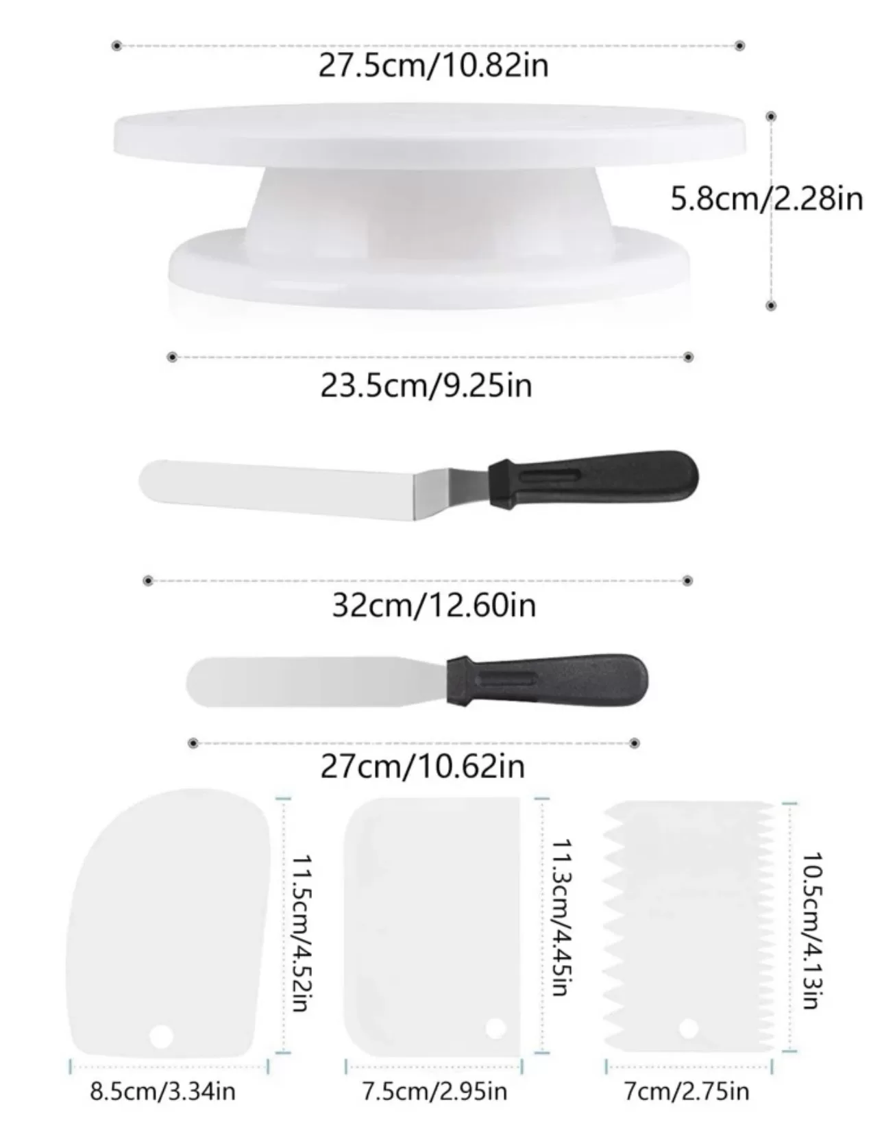 Maak het decoreren van jouw taarten nóg eenvoudiger met onze complete Afsmeer Set met Draaiplateau! Deze set is perfect voor zowel beginnende als ervaren bakkers die streven naar strakke, professioneel afgewerkte taarten.