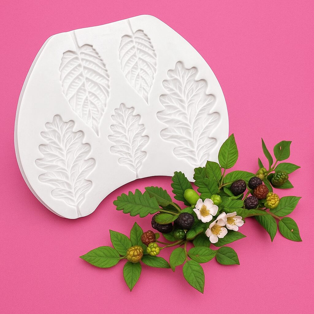 Braambes Blaadjes Mould Siliconen mal voor fondant, chocolade of marsepein. Gedetailleerde afwerking en snelle levering.