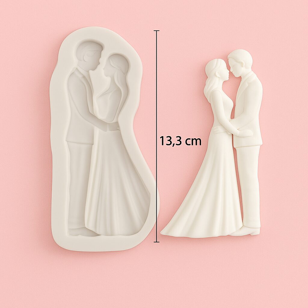 Bruidspaar Mould is een siliconen mal van hoge kwaliteit, ideaal voor het maken van decoraties van fondant, chocolade, isomalt of marsepein. Deze mal is flexibel, eenvoudig in gebruik en zorgt voor een gedetailleerde afwerking. Perfect voor thema-taarten, cupcakes of andere creatieve bakprojecten. De vorm komt exact overeen met wat je op de productfoto ziet je krijgt precies wat je verwacht. Alle mallen zijn gemaakt van food-grade siliconen en bestand tegen oventemperaturen tot ongeveer 200C. Snelle levering en altijd direct uit voorraad leverbaar via CakeMustHaves.