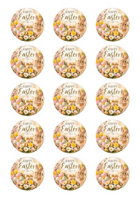 Maak je cupcakes, koekjes en andere kleine traktaties extra vrolijk met deze ronde eetbare Easter prints. De set bevat 15 eetbare prints van ongeveer 5 cm, perfect voor het decoreren van cupcakes, koekjes en mini desserts tijdens Pasen.