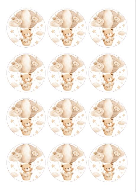 Maak je cupcakes en kleine traktaties extra schattig met deze ronde eetbare Teddy Bear prints. De set bevat 12 eetbare prints van ongeveer 6 cm, perfect voor cupcakes, koekjes en andere mini desserts.