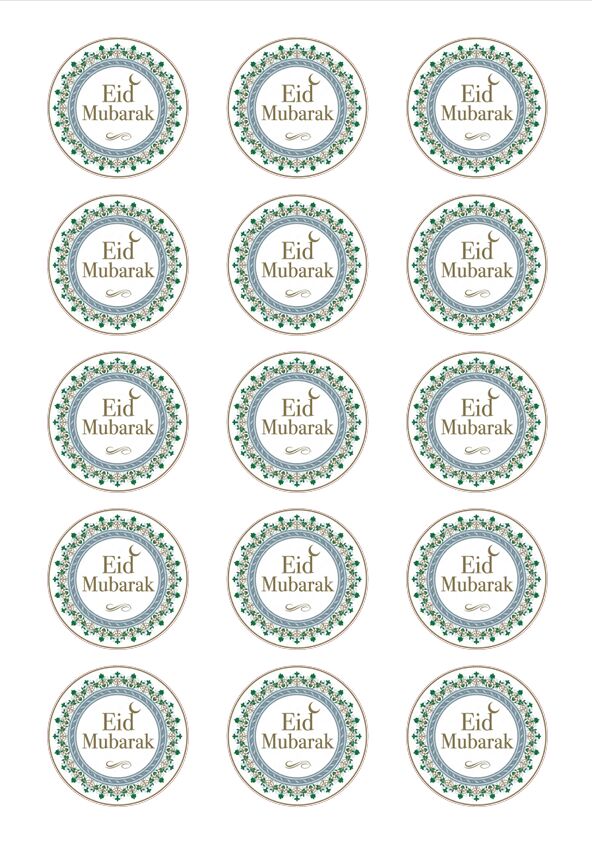 Vier het Suikerfeest in stijl met deze prachtige eetbare Eid Mubarak prints. Perfect om cupcakes, koekjes of kleine taartjes een feestelijke en persoonlijke uitstraling te geven. De prints zijn gemaakt van hoogwaardig eetbaar papier met voedselveilige inkt en zijn eenvoudig te plaatsen op fondant, botercrème of marsepein.