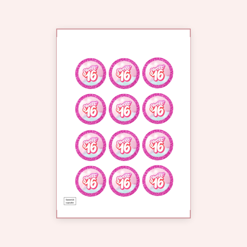 Eetbare print Sweetsixteen Thema Cupcakes