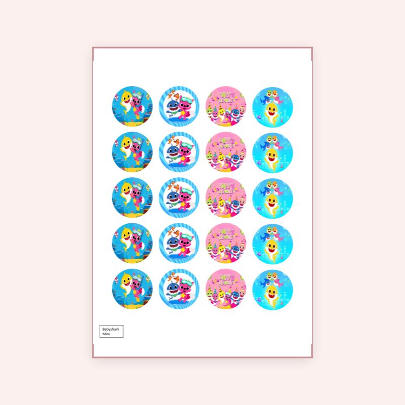 Baby Shark Cupcakes Mini taartprint perfect voor kinderfeestjes snel geleverd
