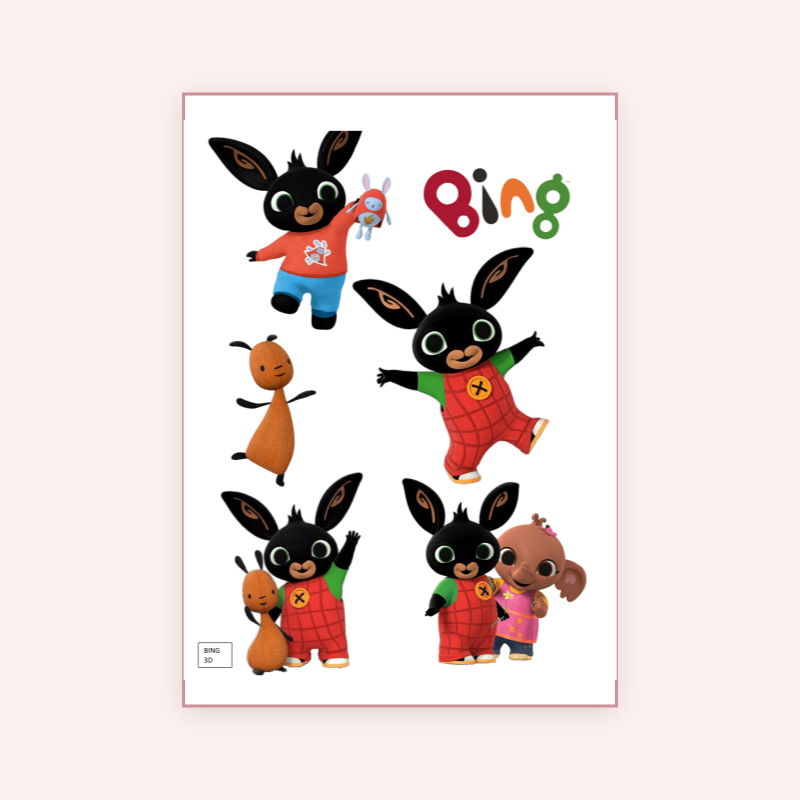 Deze vrolijke Bing print is en gegarandeerde hit op en peuter of kleuterverjaardag Lief herkenbaar en feestelijk Knip de print eenvoudig op maat en breng aan op een gladde ondergrond zoals fondant marsepein of botercreme Geschikt voor ronde taarten cupcakes of plaatgebak Ideaal voor thuisbakkers en professionals Deze eetbare print is gedrukt op en hoogwaardige frosty sheet en is volledig voedselveilig Je ontvangt exact het ontwerp zoals te zien op de productfoto helder kleurrijk en zonder verrassingen Zoek je en eetbare print voor en kindertaart themataart of verjaardag Dit is jouw perfecte keuze