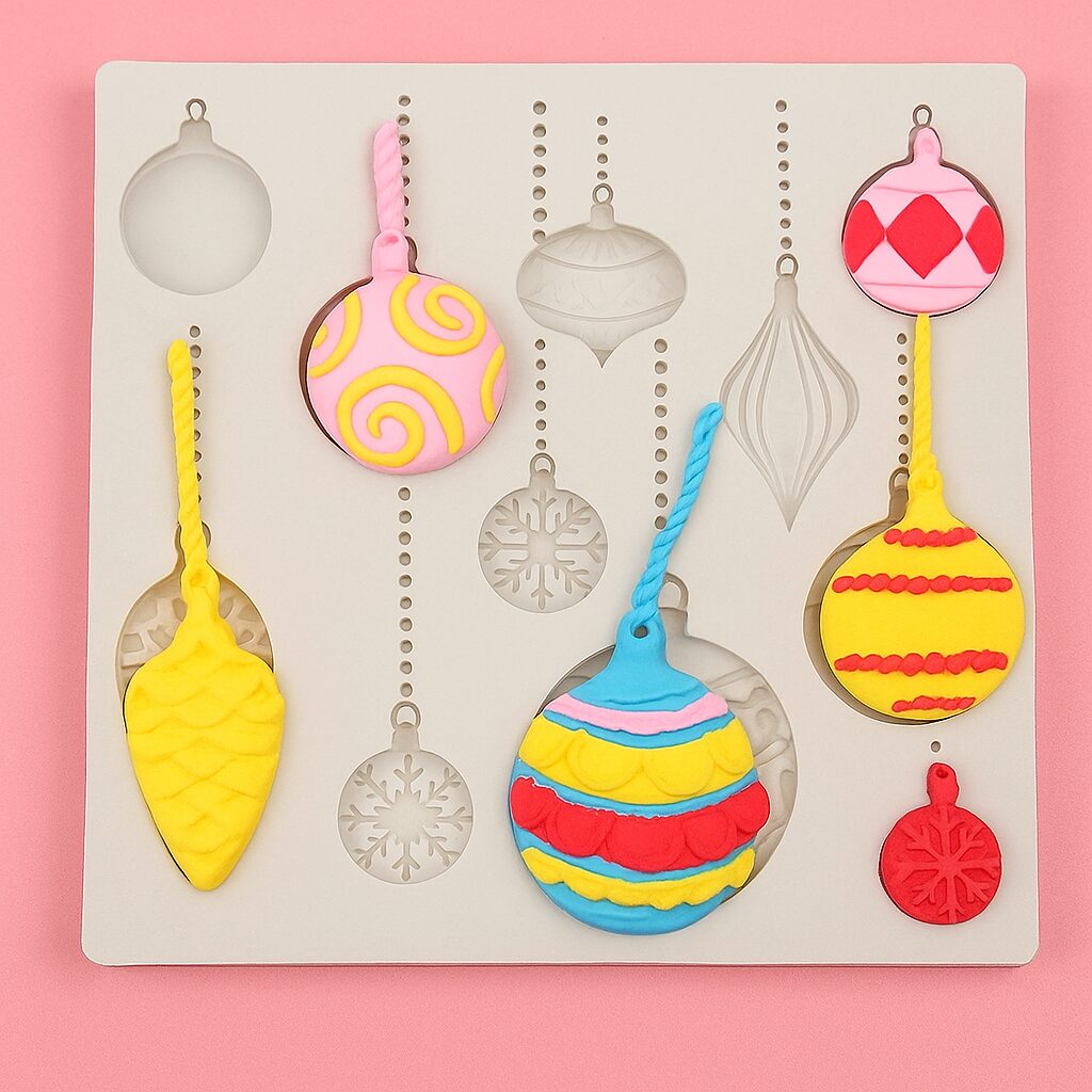 Kerstballen Mould Siliconen mal voor fondant, chocolade of marsepein. Gedetailleerde afwerking en snelle levering.