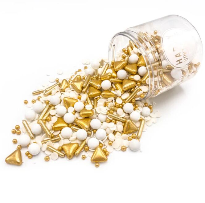 Tijd om te proosten! Met Champagne Shower van Happy Sprinkles geef je jouw baksels een sprankelende en luxe uitstraling. Deze elegante sprinklemix straalt feest, glamour en verfijning uit en is perfect voor bijzondere momenten.