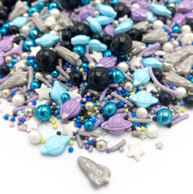 Neem je baksels mee op reis door het heelal met Cosmic Galaxy van Happy Sprinkles. Deze spectaculaire sprinklemix combineert diepe donkere tinten met sprankelende accenten voor een echte galaxy-look. Perfect voor opvallende, magische en moderne taartcreaties.