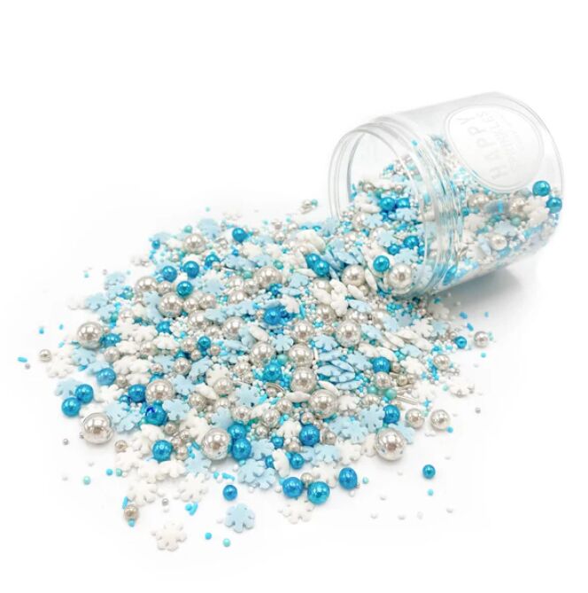Laat je baksels stralen met een ijskoude, koninklijke touch dankzij Frost Queen van Happy Sprinkles. Deze betoverende sprinklemix combineert koele tinten met luxe vormen voor een elegante en winterse uitstraling.