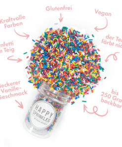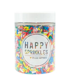 Breng kleur en plezier in je baksels met Funfetti Bakeable Strands van Happy Sprinkles. Deze vrolijke, kleurrijke suikerstrengen zijn bakvast en behouden hun kleur en vorm tijdens het bakken. Perfect om mee te bakken in cakes, koekjes, muffins en brownies.
