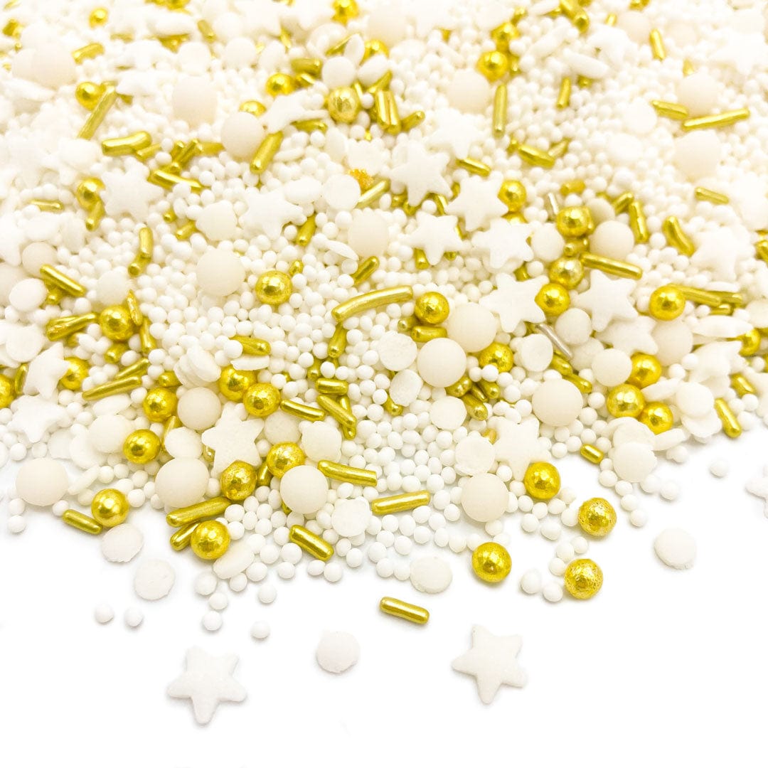 Geef je baksels een subtiele maar luxueuze glans met Golden Dust Vegan van Happy Sprinkles. Deze stijlvolle sprinklemix in goudtinten zorgt voor een elegante finishing touch en past perfect bij zowel moderne als klassieke creaties.