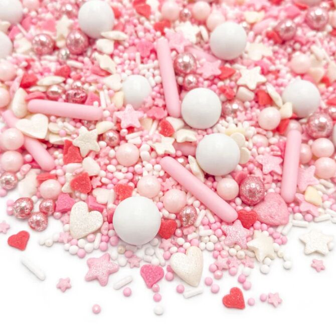 Laat liefde opbloeien in je baksels met Love Birds van Happy Sprinkles. Deze romantische sprinklemix straalt warmte, zachtheid en elegantie uit en is perfect voor liefdevolle en feestelijke creaties.